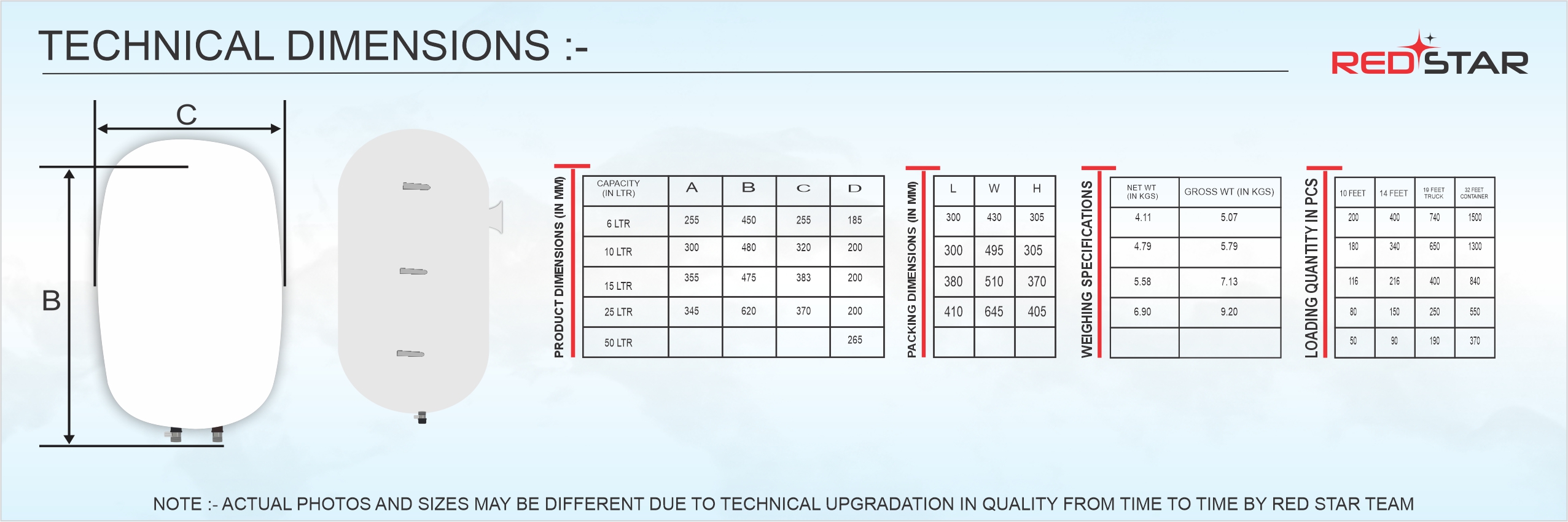 | Capacity Options | 6 / 10 / 15 / 25 / 35 / 50 Litres |