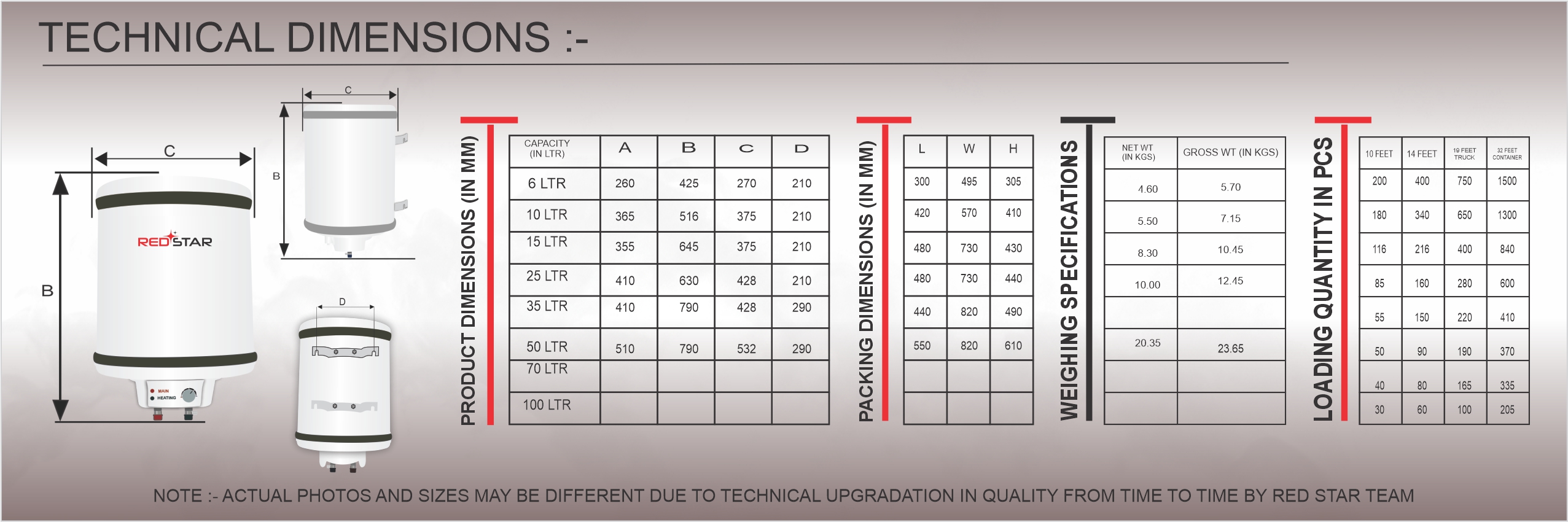 | Capacity Options | 6 / 10 / 15 / 25 / 35 / 50 Litres |