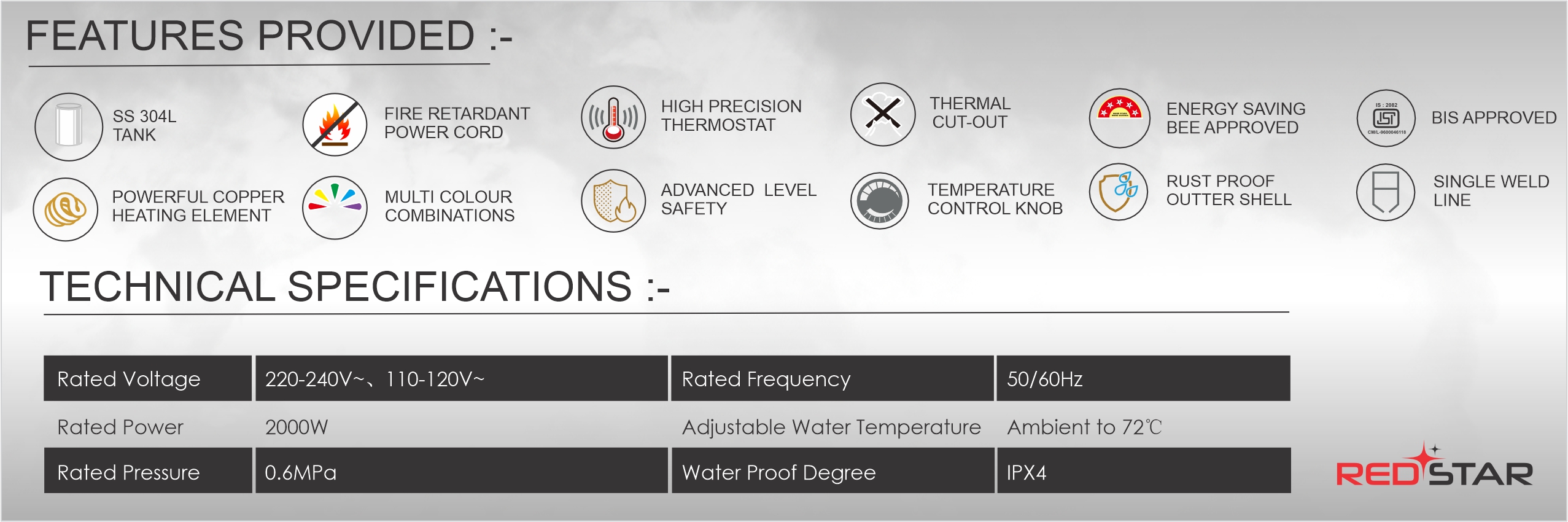 Power Rating 2000 Watt | 230V AC, 50 Hz