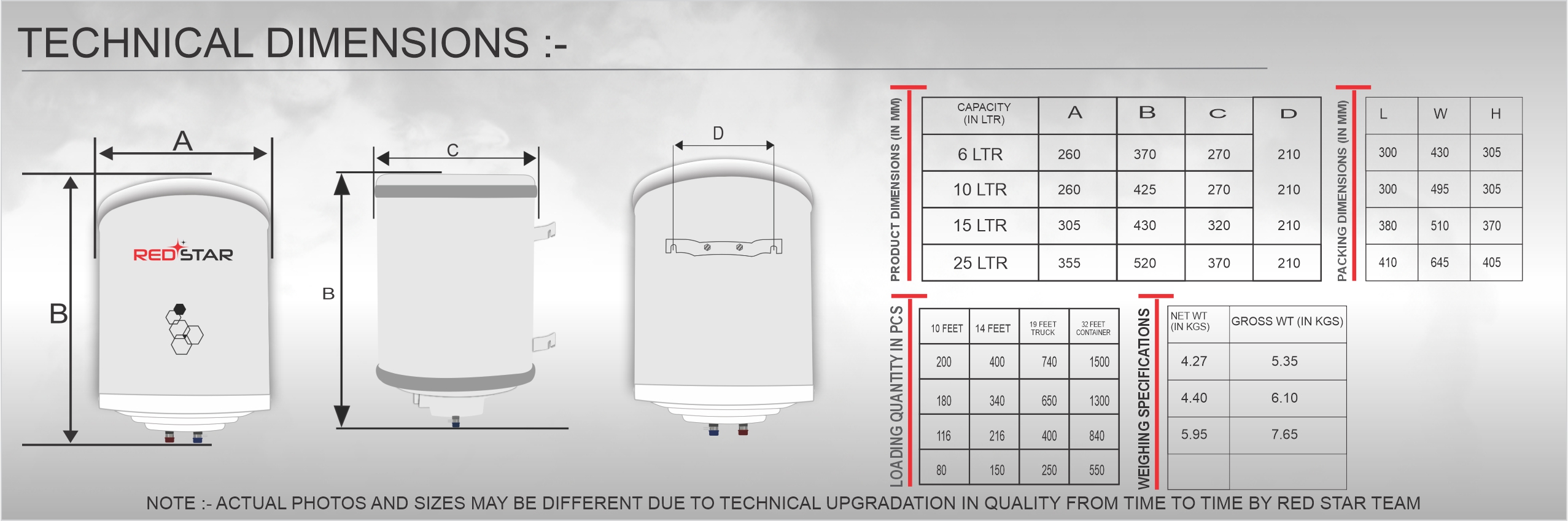 • Six capacity options from 15 | 25 litres.