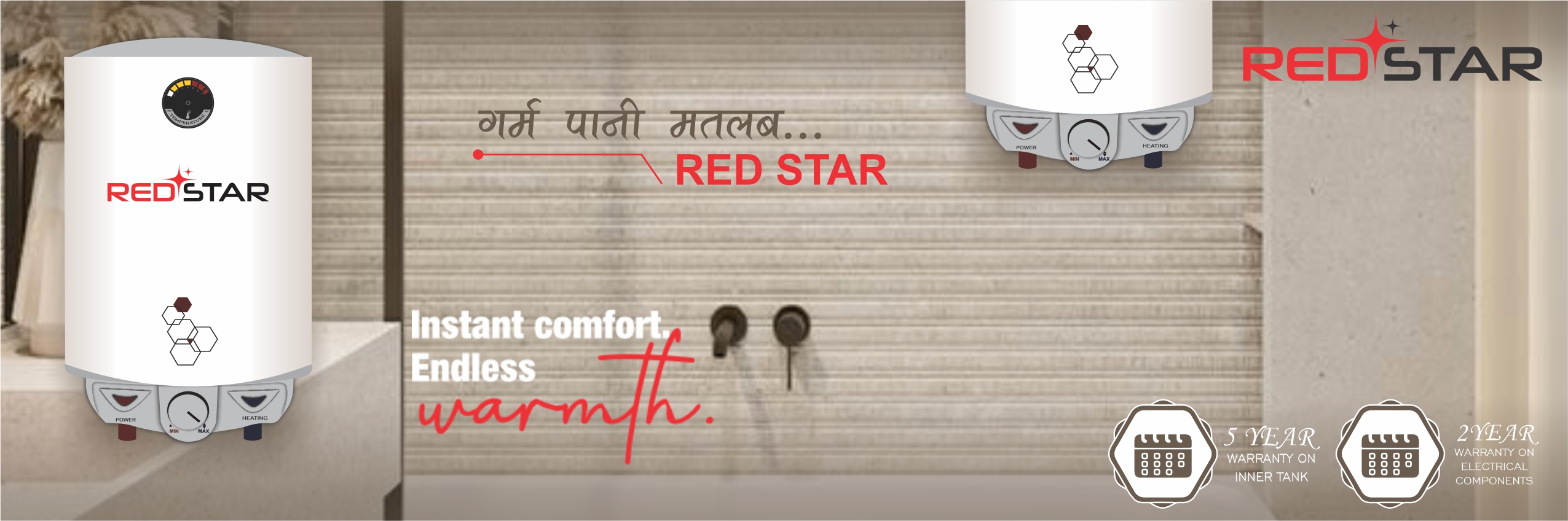 Copper heating element delivers rapid and efficient water heating.