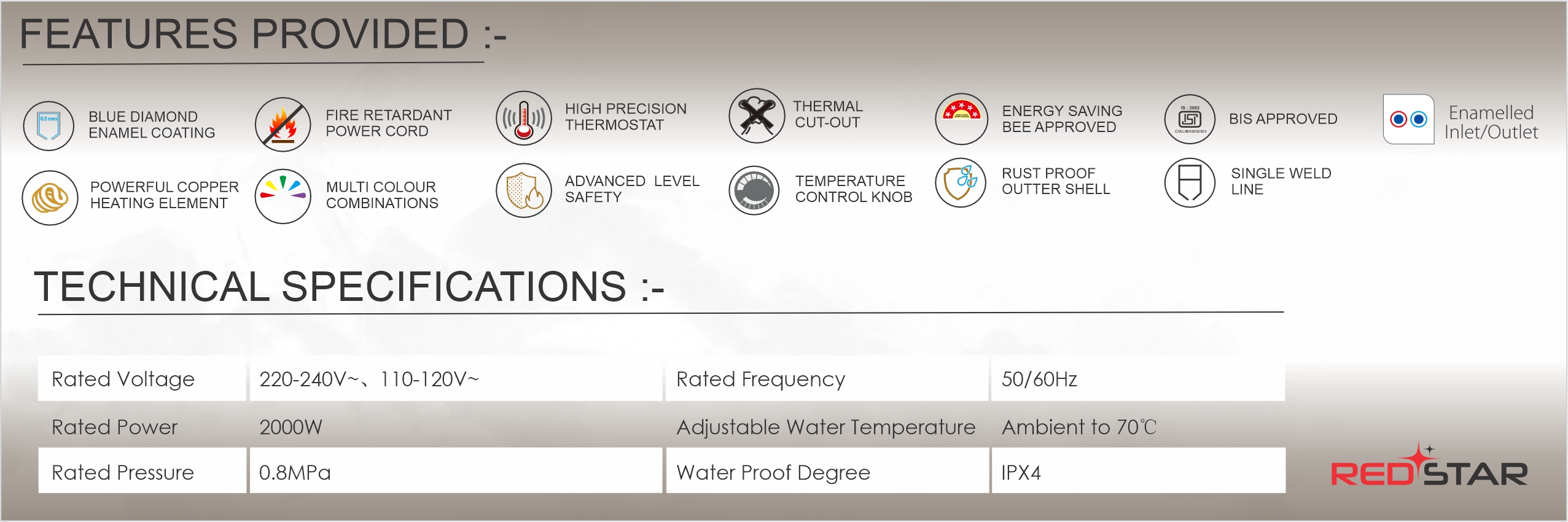 | Inner Tank | Glassline Coated (Anti-Corrosion) |