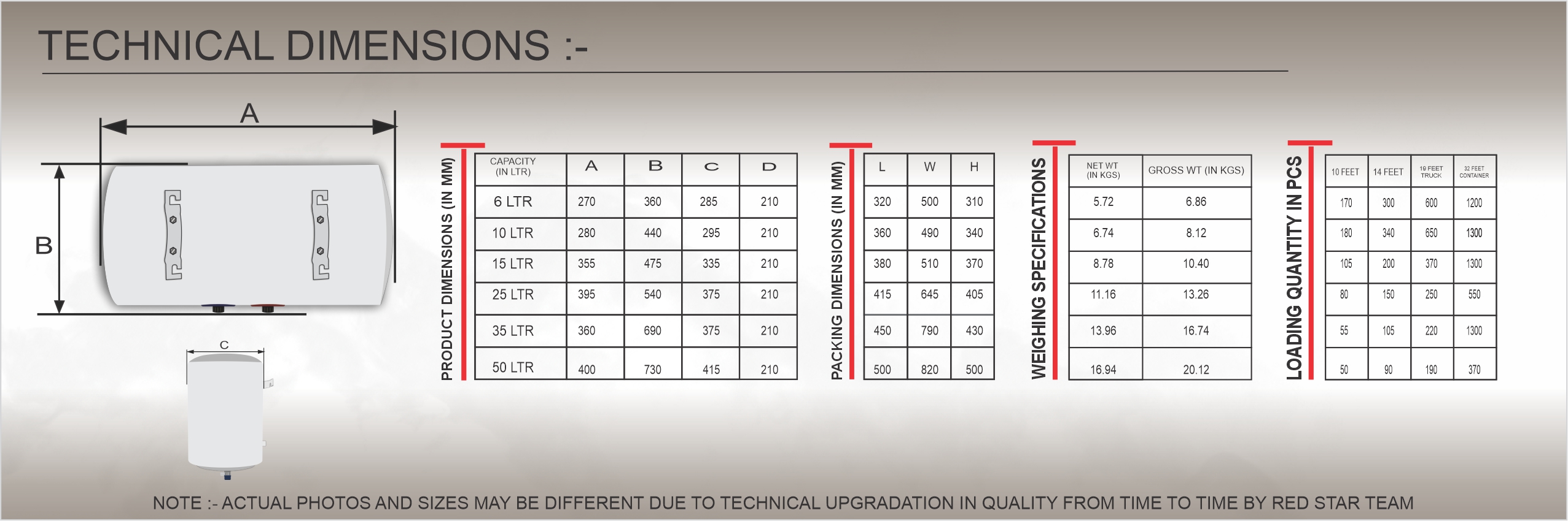 | Capacities | 6 / 10 / 15 / 25 / 35 / 50 Litres |
